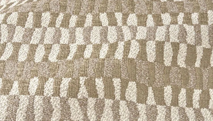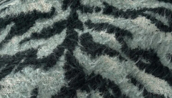 Material jacard cu un model animalier cu un tip de finisaj ce îi conferă o textură groasă și moale.