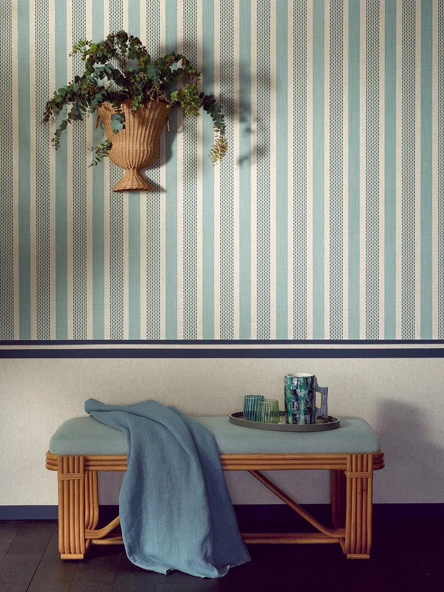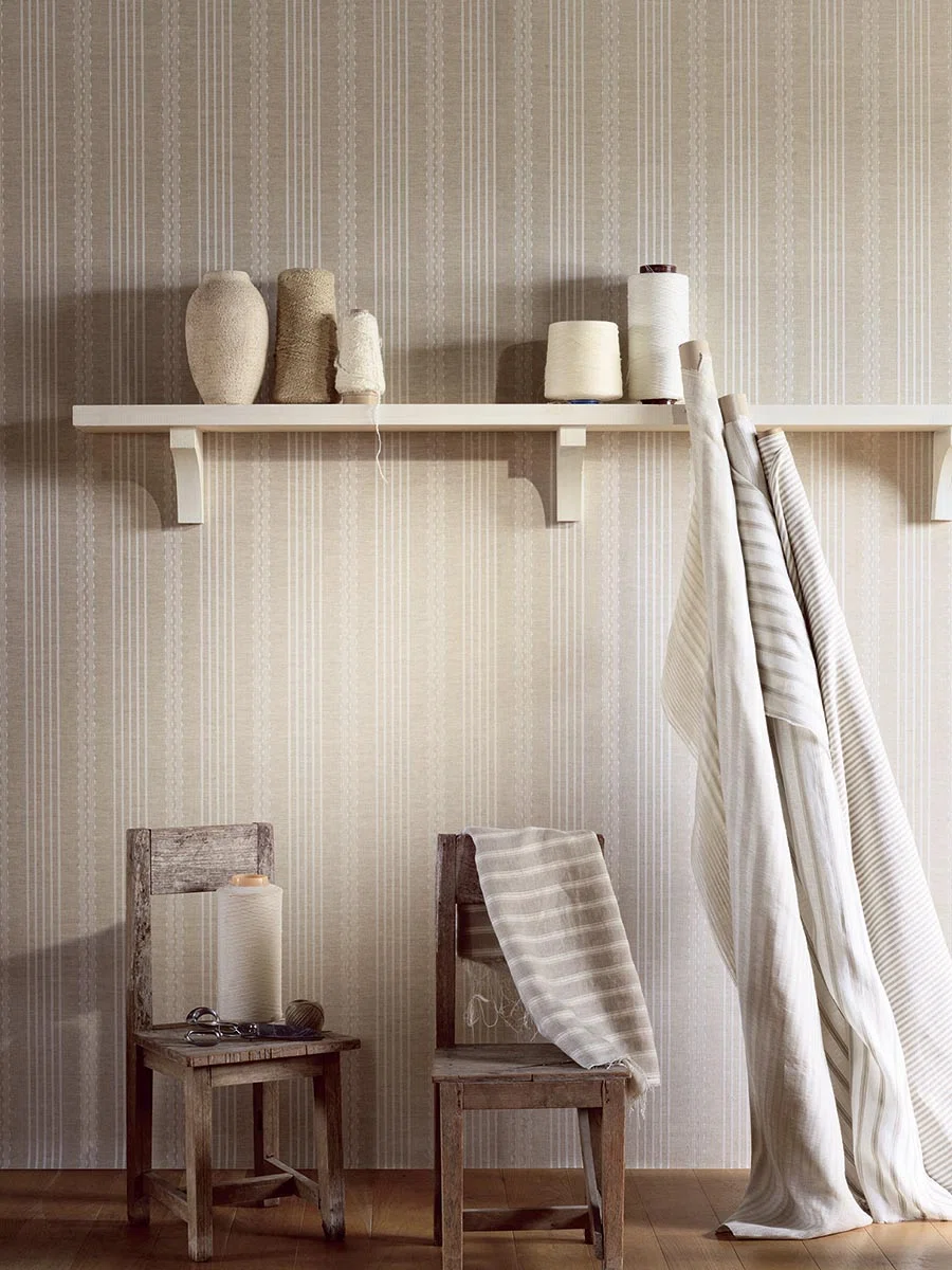 Tapet cu model în dungi din in țesut cu elemente contrastante în herringbone și simple.