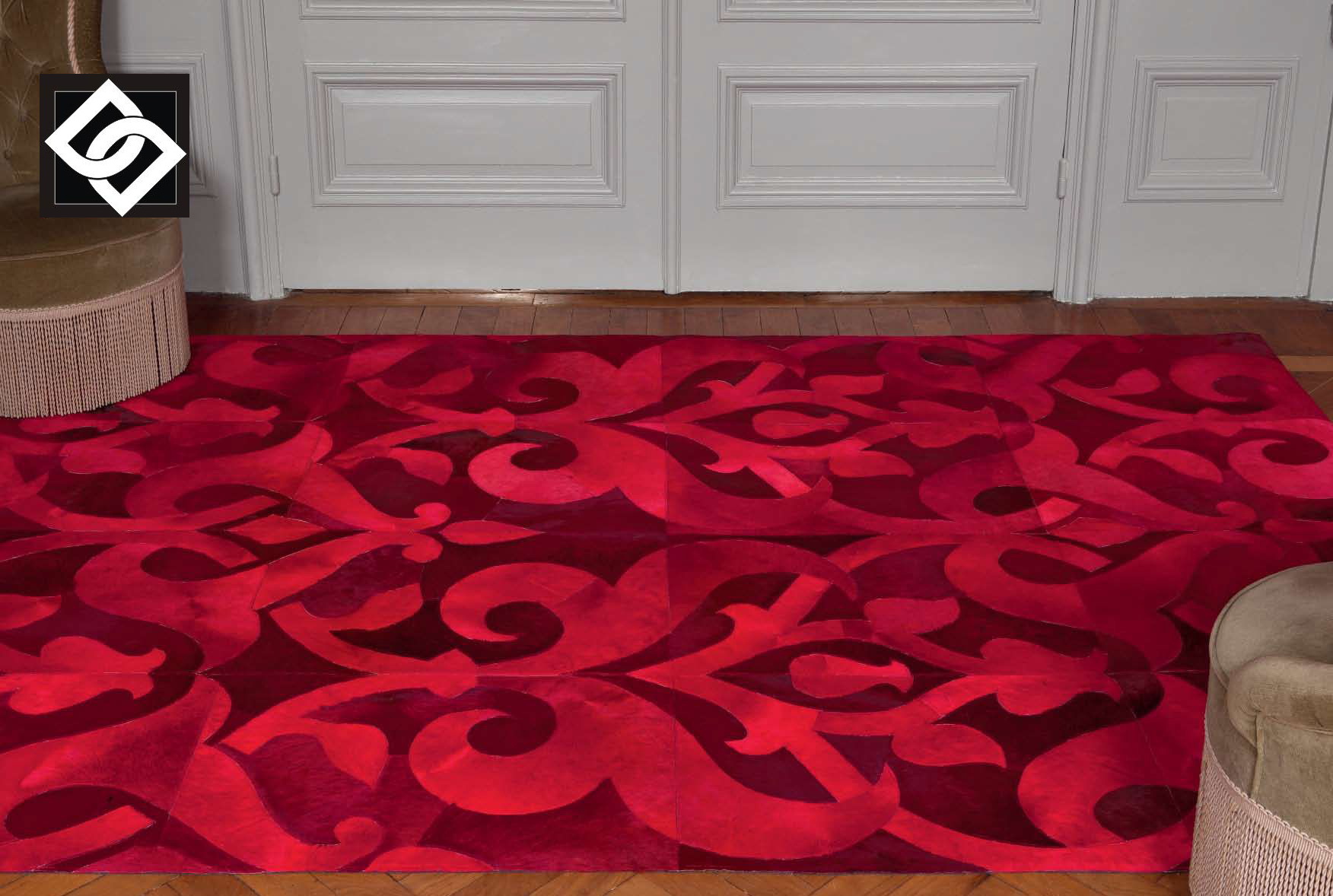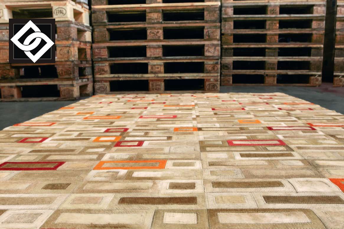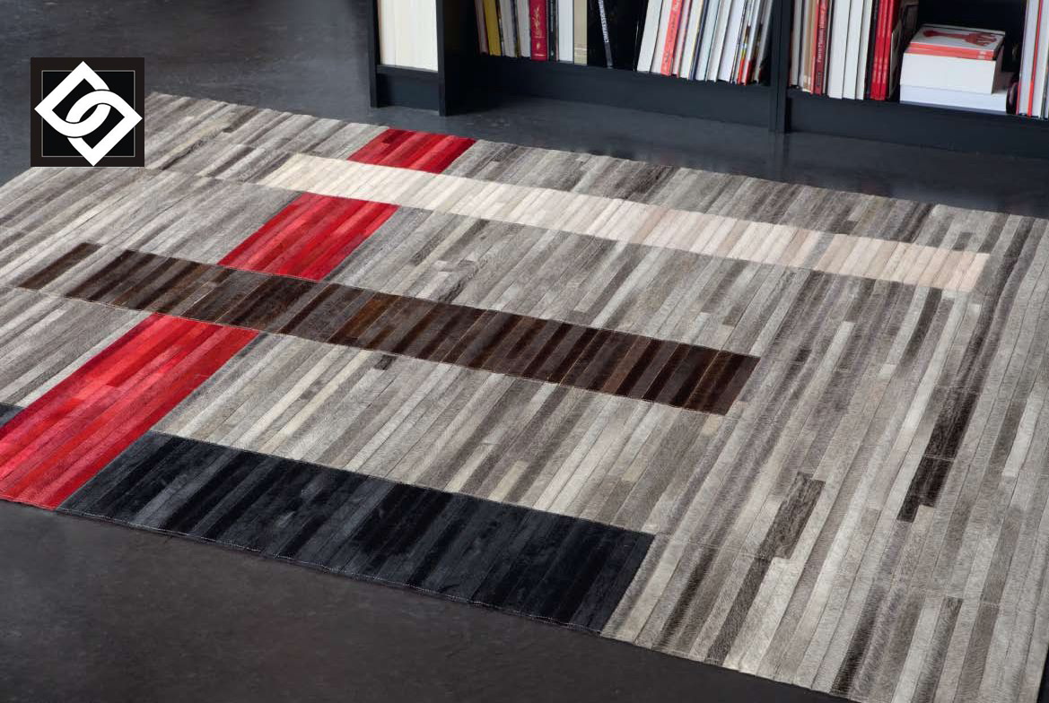 Covoarele cusute manual din piele evoca o atmosfera calda cu un simt tactil natural. Efectele materialelor au fost gandite pentru a stabili un relief pronuntat iar culorile indraznete se potrivesc pentru completa stilul de amenajare pentru interioare de apartamente, case si chiar hoteluri.