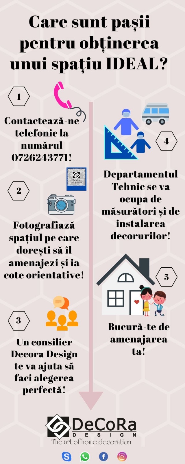 Digitalizarea reprezintă un prim pas către schimbare! De astăzi este tot mai ușor să primim sfaturi și idei în timp real de la designeri și arhitecți. Oricât de dificil ar părea acest lucru, la Decora Design aveți ocazia să vă amenajați locuința chiar de ACASĂ. Vă invităm, astfel, să accesați rubrica contact pentru a vă programa la o consiliere video cu unul dintre specialiștii companiei.